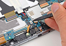 Инженер нашего сервисного центра делает ремонт: заменяет неработающую деталь исправной фирменной запчастью